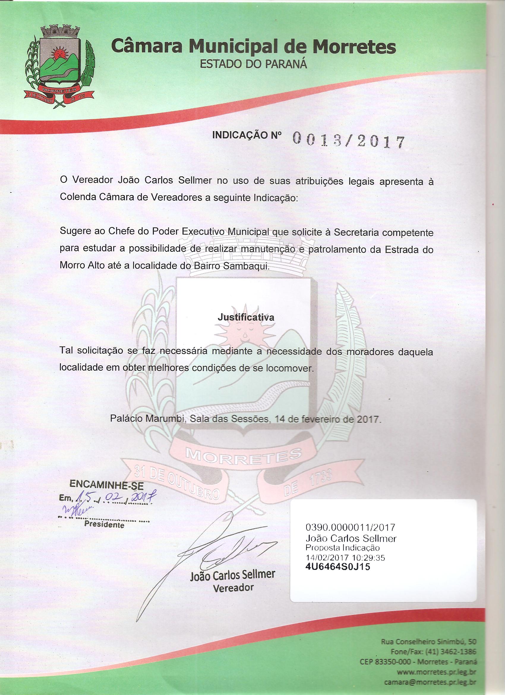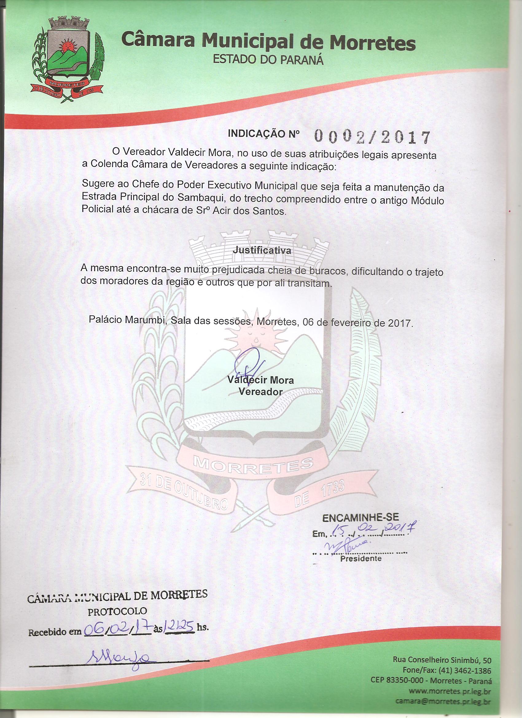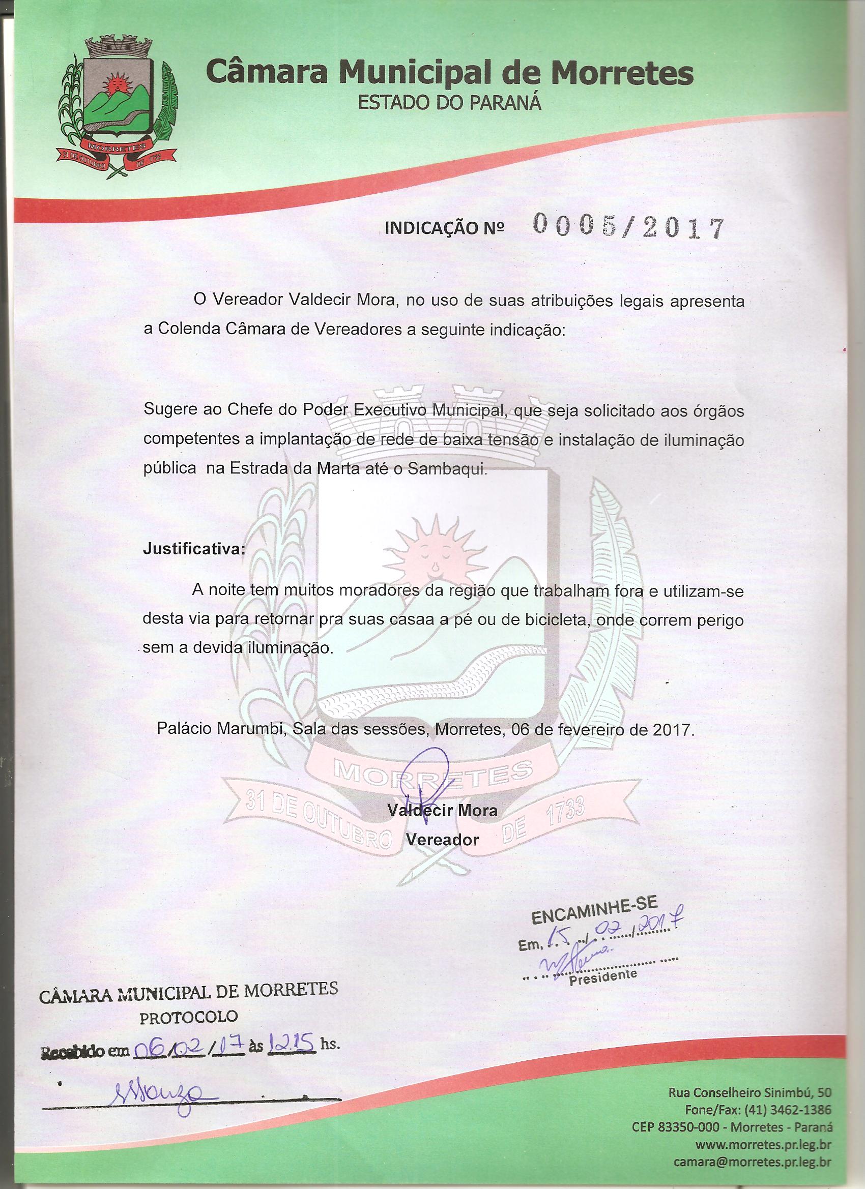 ![]() SUGERE AO CHEFE DO PODER EXECUTIVO MUNICIPAL ,QUE SEJA SOLICITADO AOS ÓRGÃOS COMPETENTES A IMPLANTAÇÃO DE REDE DE BAIXA TENSÃO E INSTALAÇÃO DE ILUMINAÇÃO PÚBLICA NA ESTRADA DA MARTA ATÉ O SAMBAQUI.