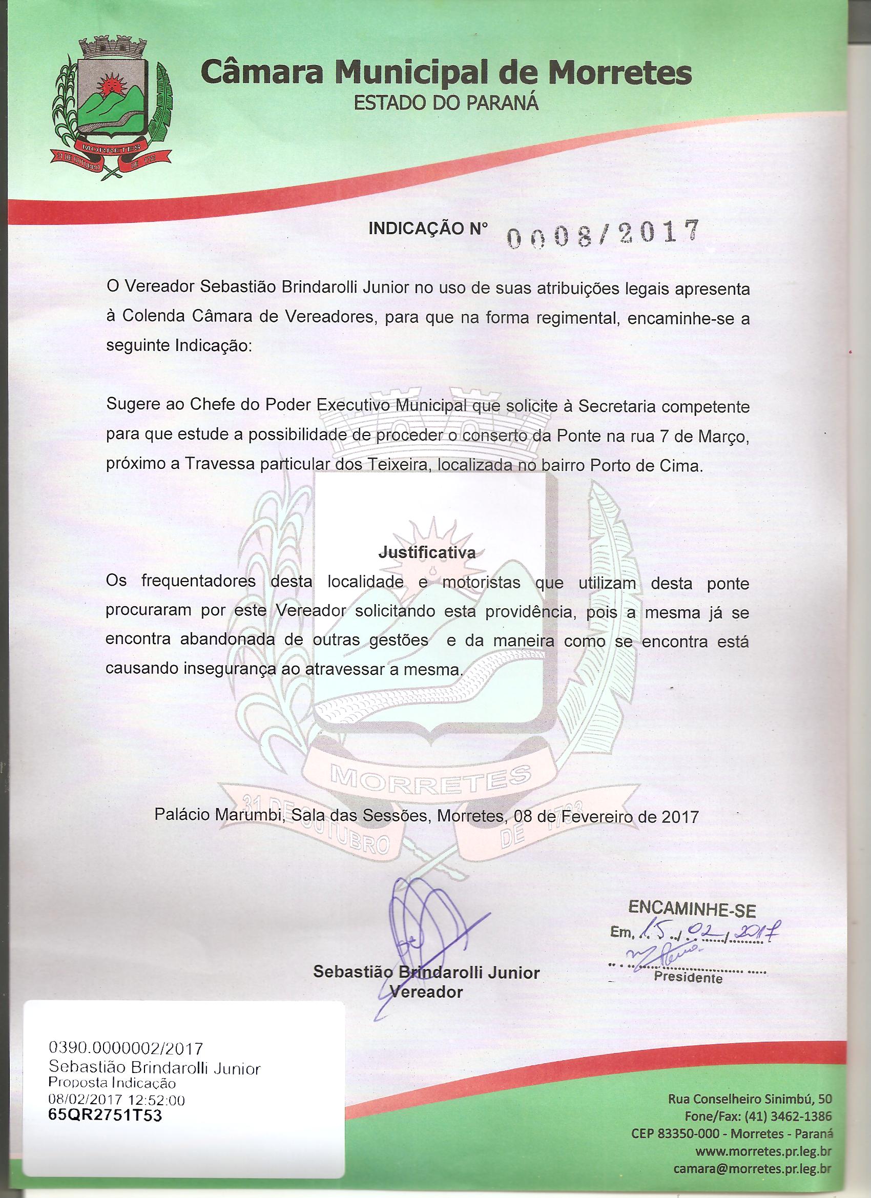 ![]() SUGERE AO CHEFE DO PODER EXECUTIVO MUNICIPAL QUE SOLICITE À SECRETARIA COMPETENTE PARA QUE ESTUDE A POSSIBILIDADE DE PROCEDER O CONSERTO DA PONTE NA RUA 7 DE MARÇO ,PRÓXIMO A TRAVESSA PARTICULAR DOS TEIXEIRA ,LOCALIZADA NO BAIRRO PORTO DE CIMA .