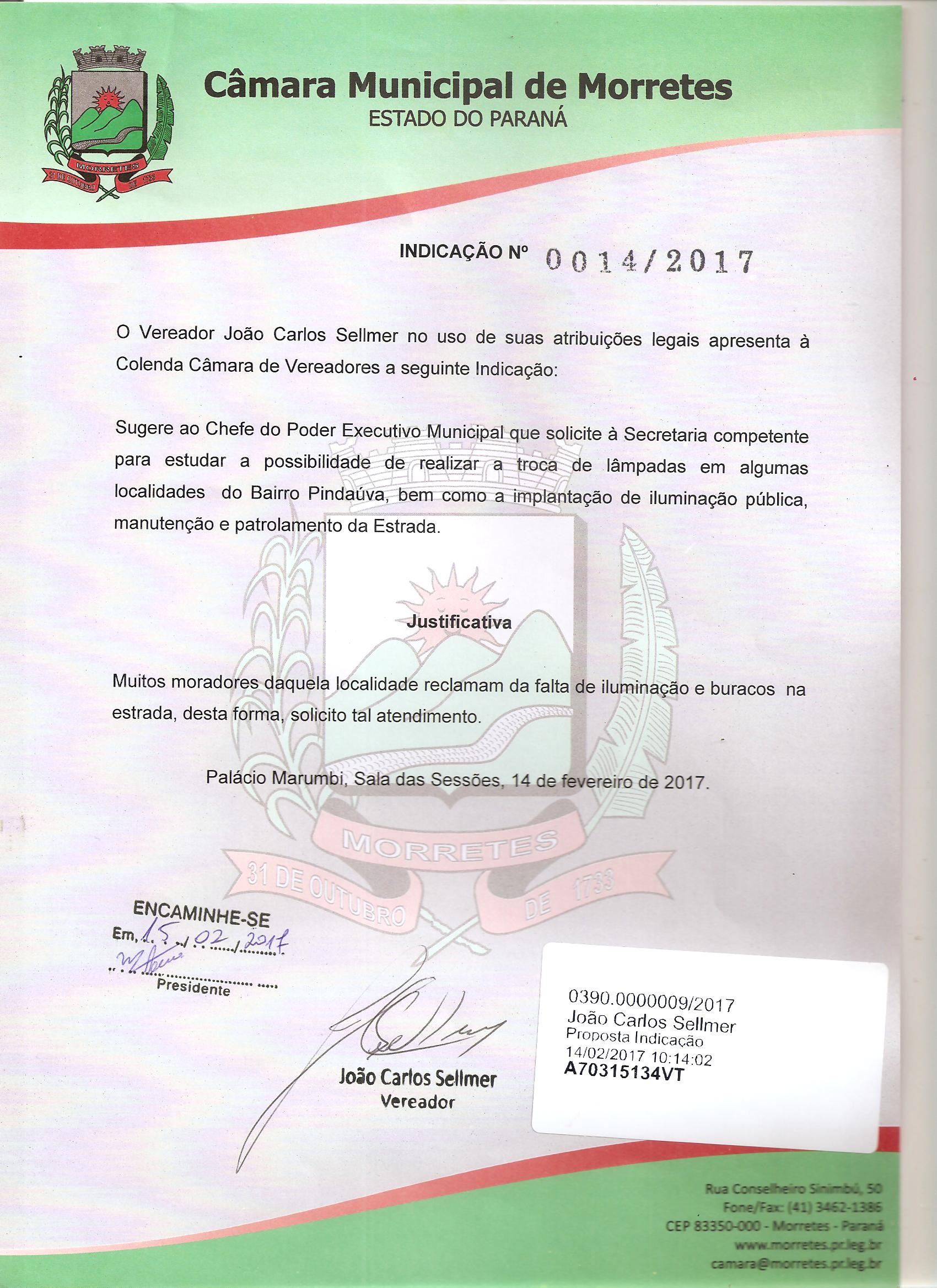 ![]() SUGERE AO CHEFE DO PODER EXECUTIVO MUNICIPAL QUE SOLICITE À SECRETARIA COMPETENTE PARA ESTUDAR A POSSIBILIDADE DE REALIZAR A TROCA DE LÂMPADA EM ALGUMAS LOCALIDADE DO BAIRRO PINDAÚVA ,BEM COMO IMPLANTAÇÃO DE ILUMINAÇÃO PÚBLICA ,MANUTENÇÃO E PATROLAMENTO DA ESTRADA .