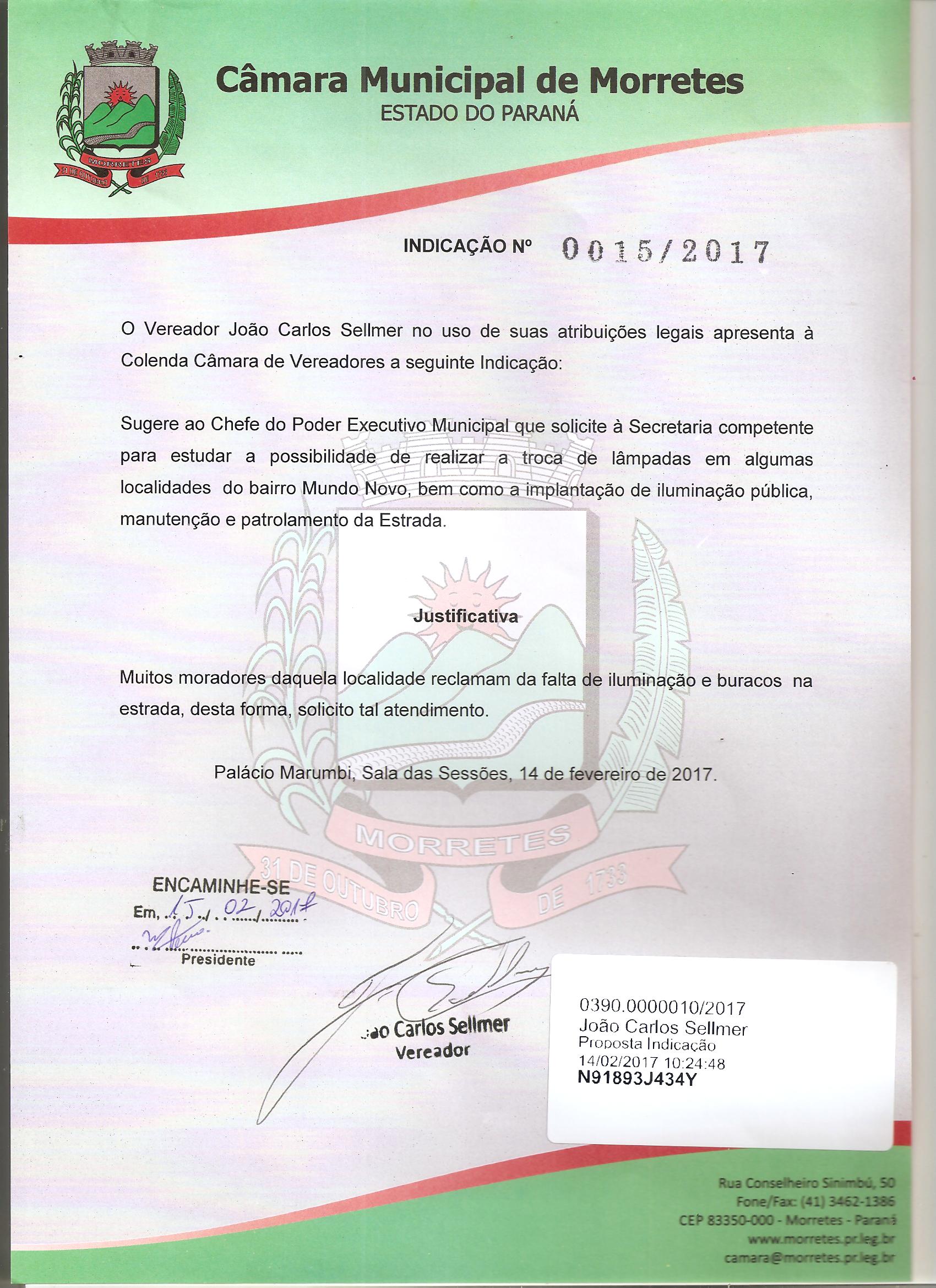 ![]() SUGERE AO CHEFE DO PODER EXECUTIVO MUNICIPAL QUE SOLICITE A SECRETARIA COMPETENTE PARA ESTUDAR A POSSIBILIDADE DE REALIZAR A MANUTENÇÃO E MELHORA NA ILUMINAÇÃO PUBLICA NA ROD, MARIO MARCONDES LOBO (RETA DO PORTO),PARA AUMENTAR A SEGURANÇA DOS QUE UTILIZAM A CICLOVIA PARALELA A RODOVIA.