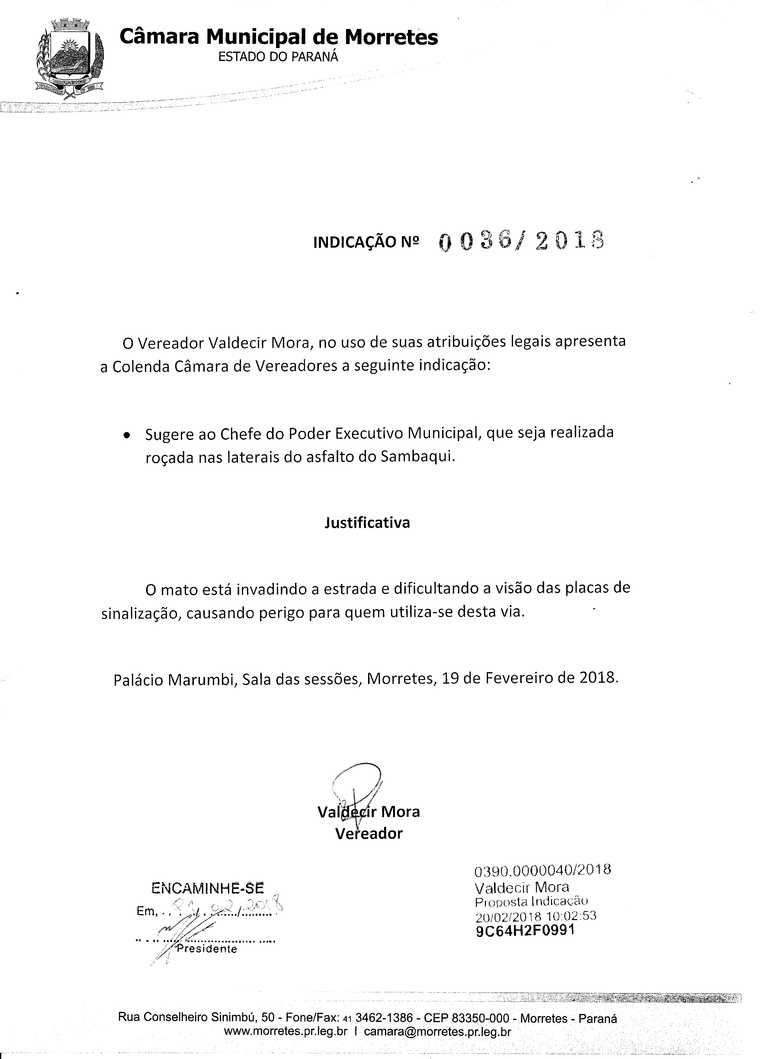 Ementa: SUGERE AO CHEFE DO PODER EXECUTIVO MUNICIPAL QUE SOLICITE A SECRETARIA COMPETENTE PARA ESTUDAR A POSSIBILIDADE DE REALIZAR A ROÇADA NAS LATERAIS DO ASFALTO DO SAMBAQUI.