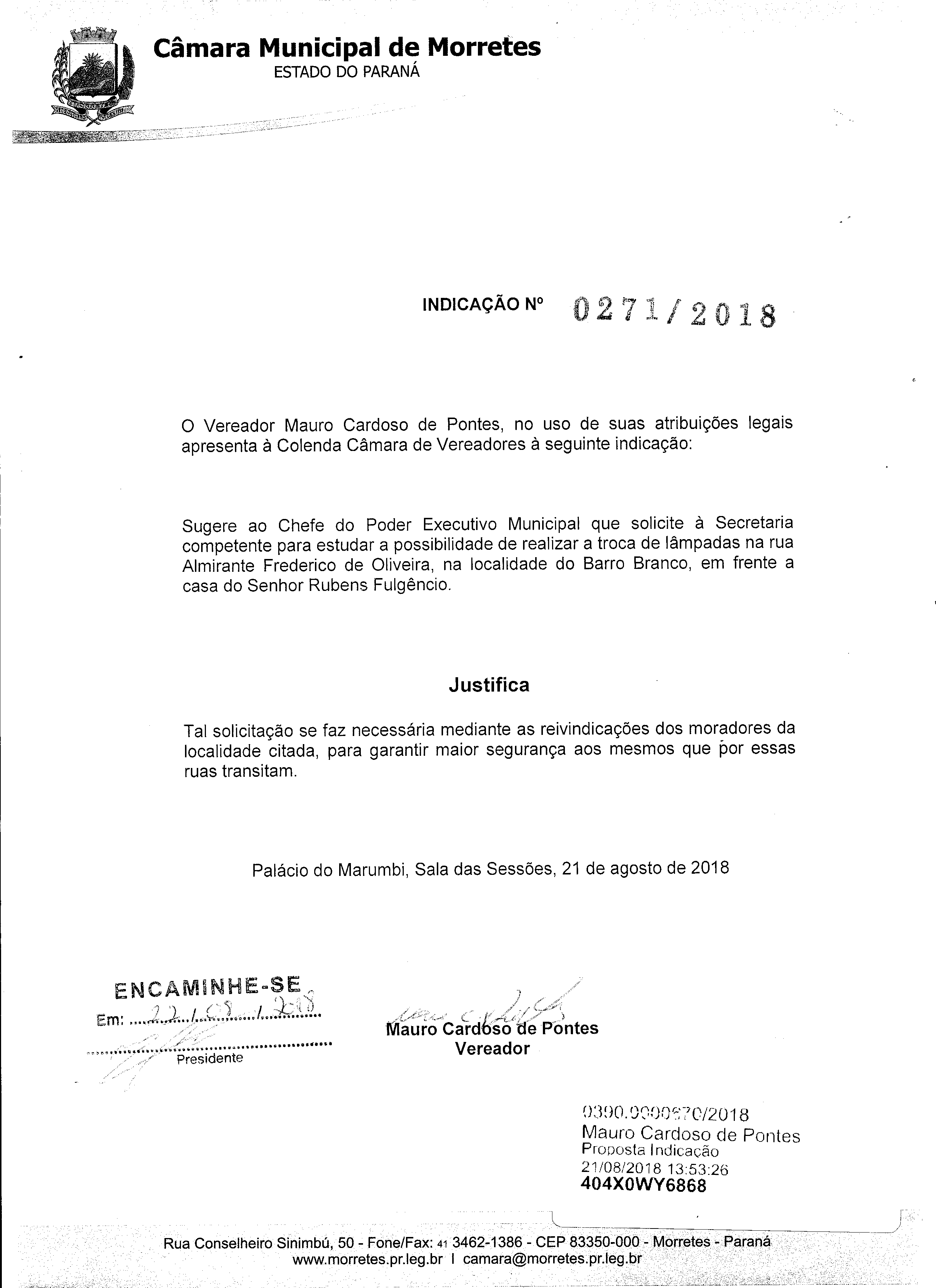 IND 271/2018 - Indicação