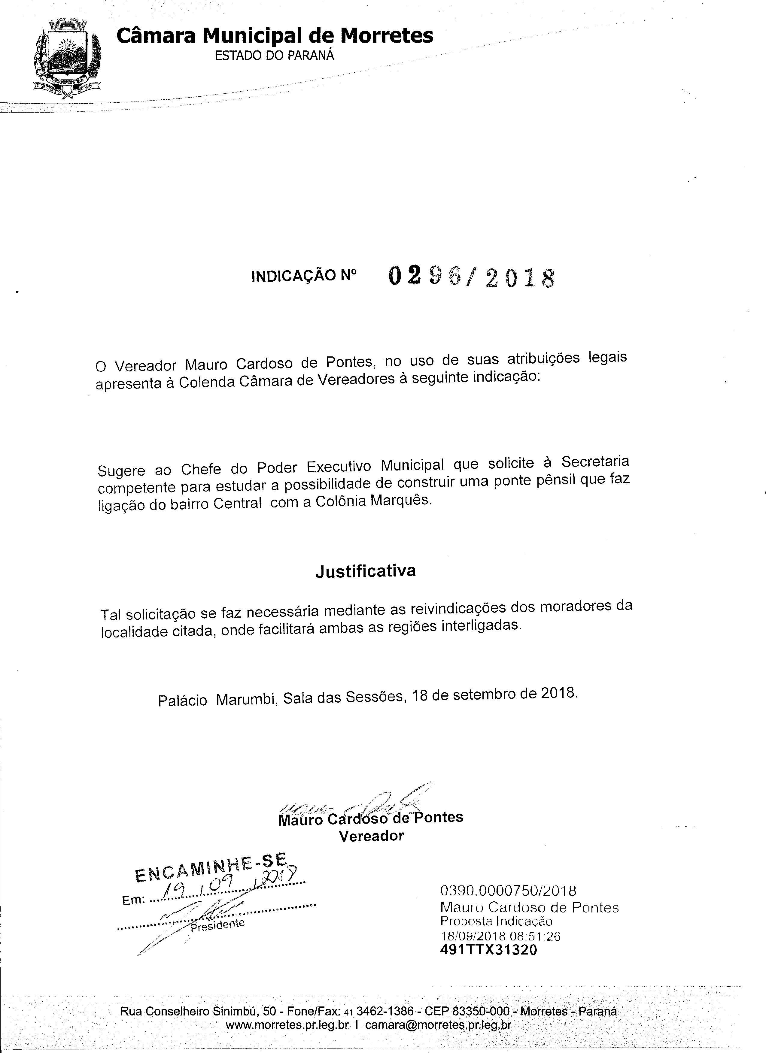 IND 296/2018 - Indicação