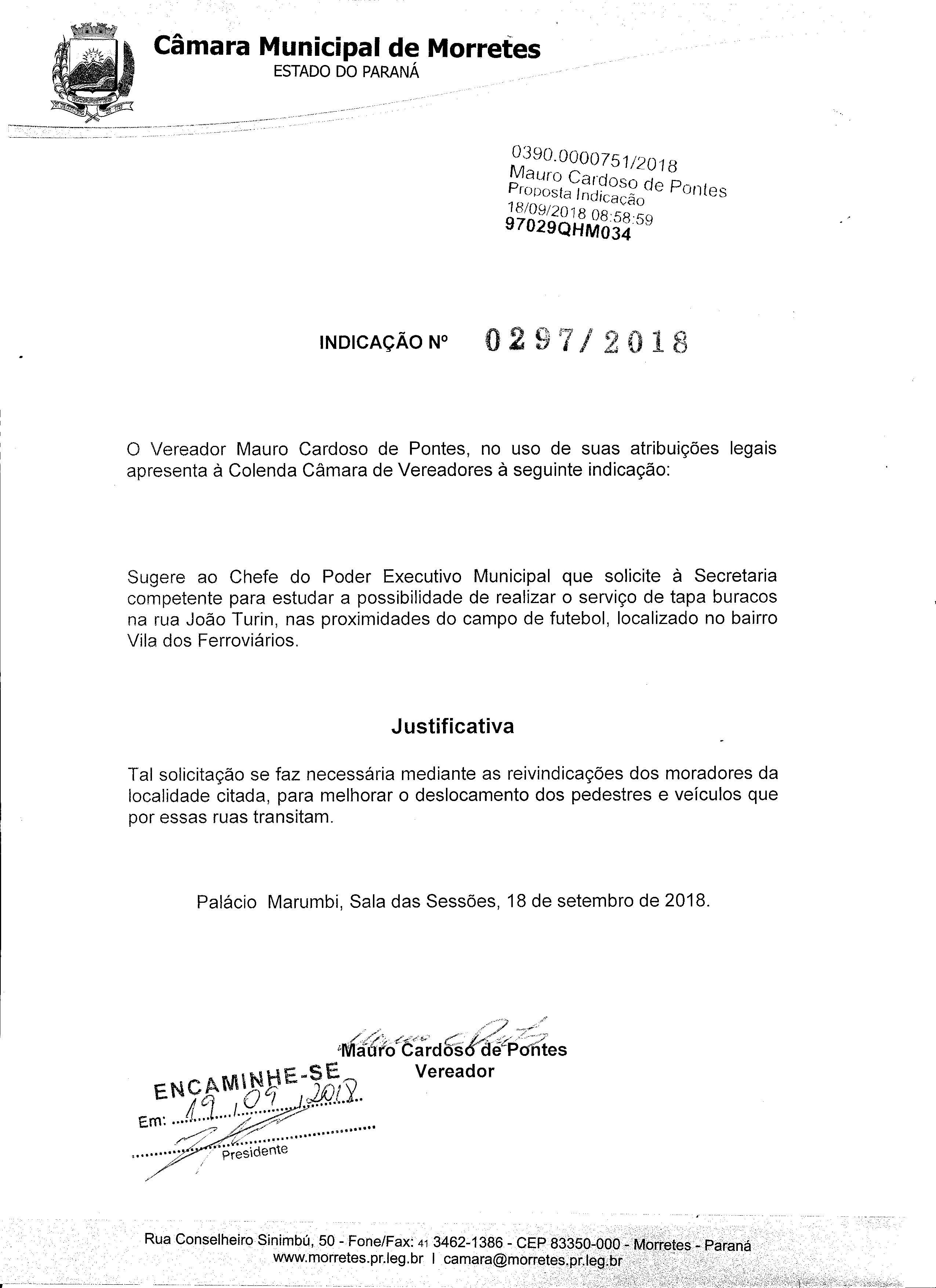IND 297/2018 - Indicação
