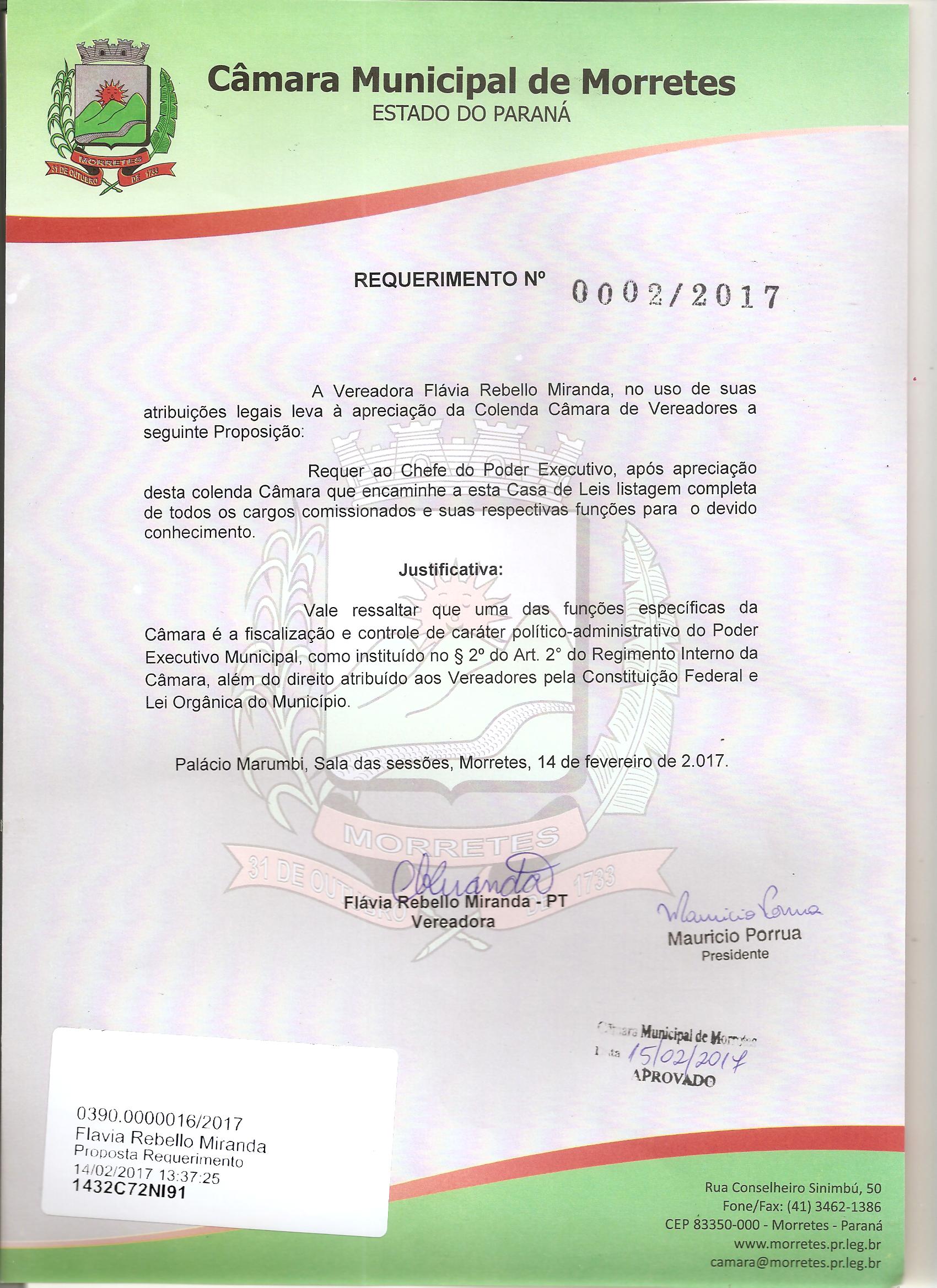 ![]() REQUER AO CHEFE DO PODER EXECUTIVO ,APÓS APRECIAÇÃO DESTA COLENDA CÂMARA QUE ENCAMINHE A ESTA CASA DE LEIS LISTAGEM COMPLETA DE TODOS OS CARGOS COMISSIONADOS E SUAS RESPECTIVAS FUNÇÕES PARA O DEVIDO CONHECIMENTO.