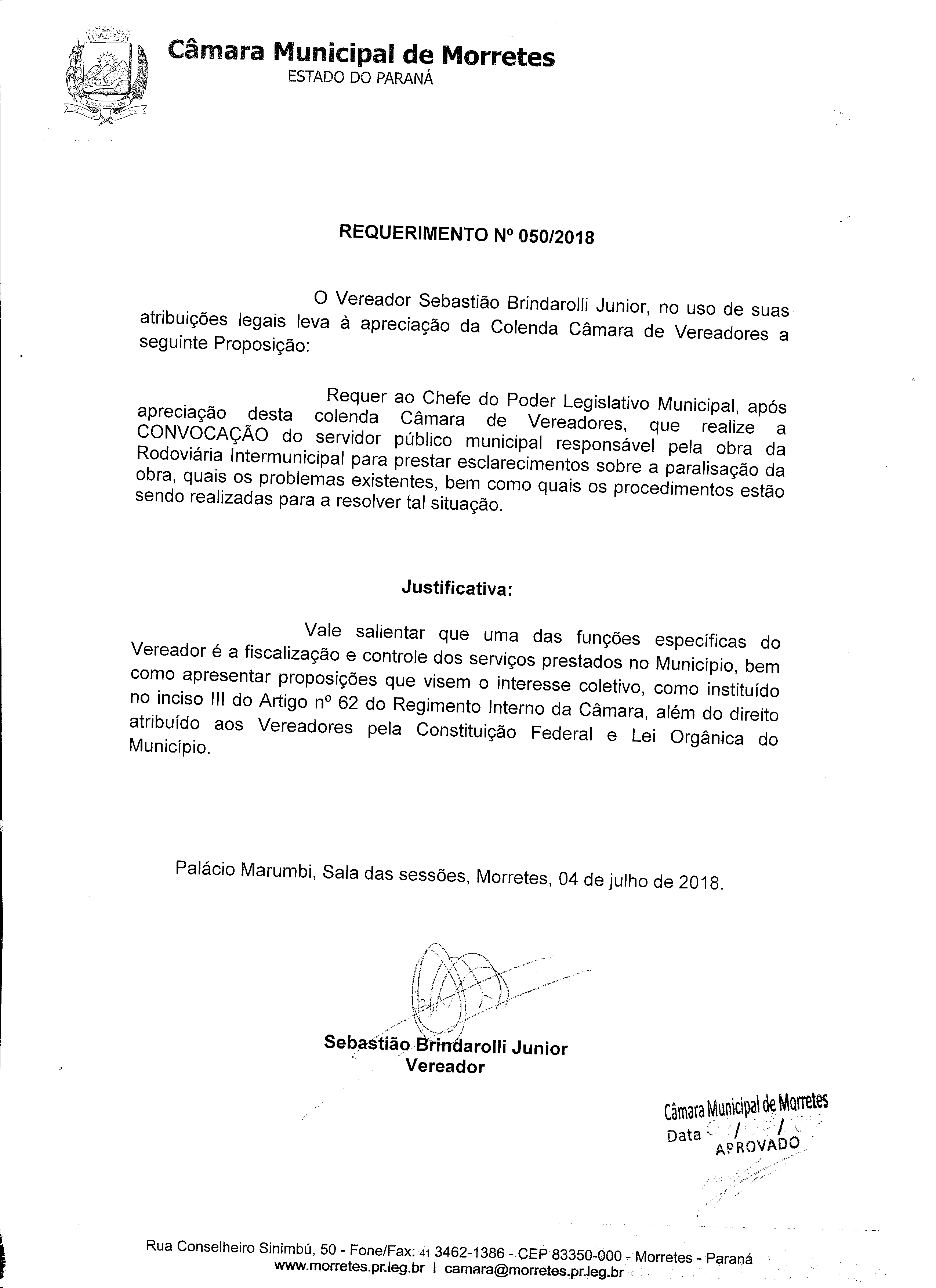 ![]() REQUER AO CHEFE DO PODER LEGISLATIVO MUNICIPAL, APÓS APRECIAÇÃO DESTA COLENDA CÂMARA DE VEREADORES, QUE REALIZE A CONVOCAÇÃO DO SERVIDOR PÚBLICO MUNICIPAL RESPONSÁVEL PELA OBRA DA RODOVIÁRIA INTERMUNICIPAL PARA PRESTAR ESCLARECIMENTOS SOBRE A PARALISAÇÃO DA OBRA, QUAIS OS PROBLEMAS EXISTENTES, BEM COMO QUAIS OS PROCEDIMENTOS ESTÃO SENDO REALIZADAS PARA A RESOLVER TAL SITUAÇÃO.