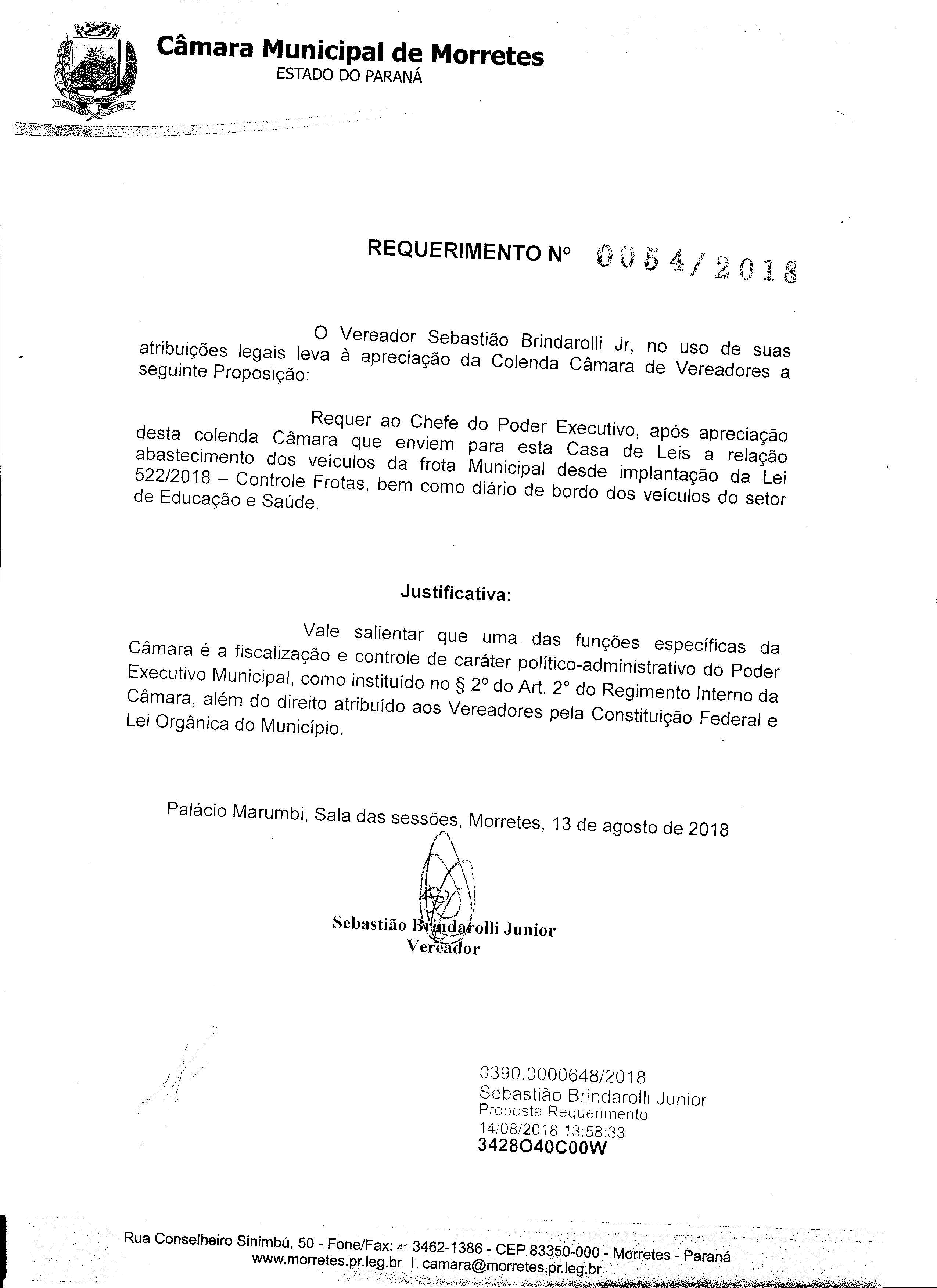 ![]() REQUER AO CHEFE DO PODER EXECUTIVO, APÓS APRECIAÇÃO DESTA COLENDA CÂMARA QUE ENVIEM PARA ESTA CASA DE LEIS A RELAÇÃO ABASTECIMENTO DOS VEÍCULOS DA FROTA MUNICIPAL DESDE IMPLANTAÇÃO DA LEI 522/2018 – CONTROLE FROTAS, BEM COMO DIÁRIO DE BORDO DOS VEÍCULOS DOS SEGUINTESSETORES: